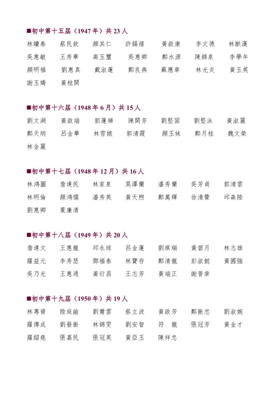 初中第15至19屆畢業生名錄