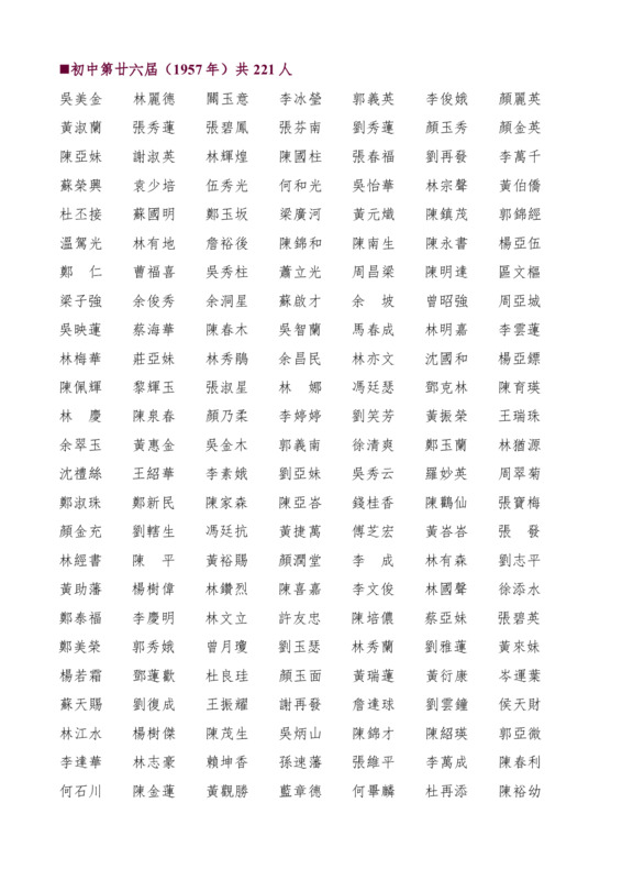 初中第26屆畢業生名錄