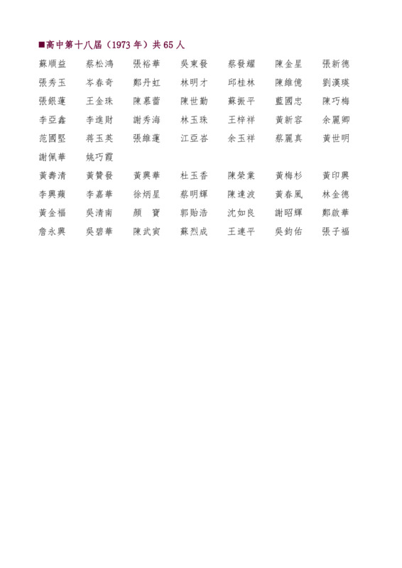 高中第18屆畢業生名錄