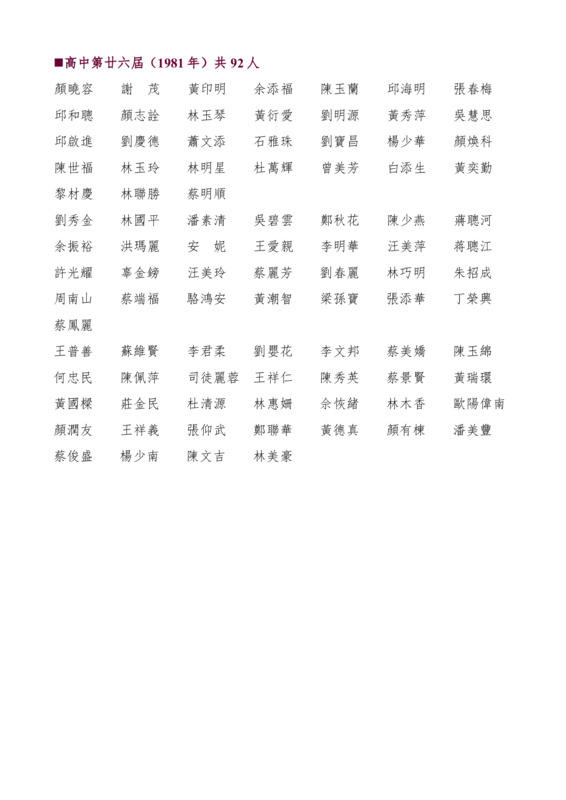 高中第26屆畢業生名錄