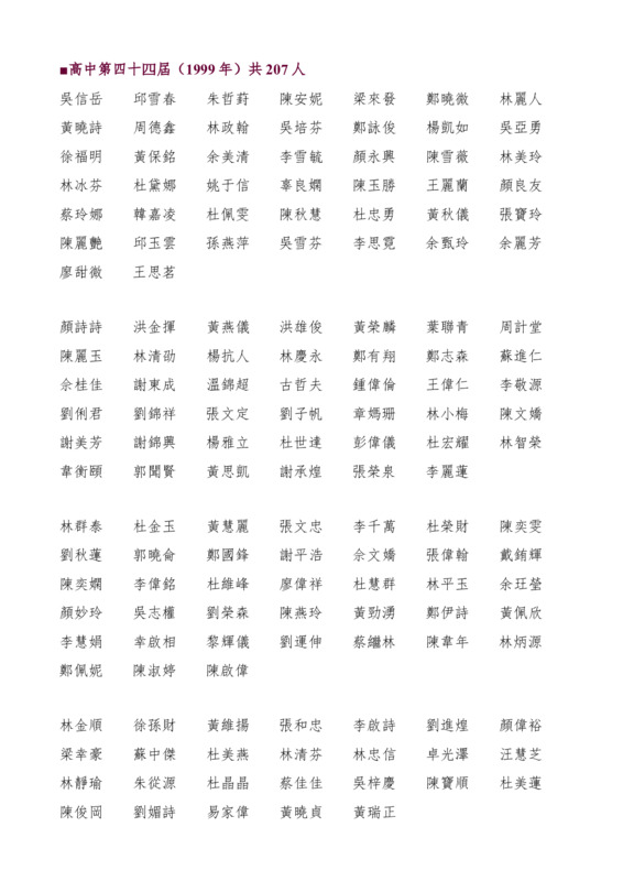 高中第44屆畢業生名錄