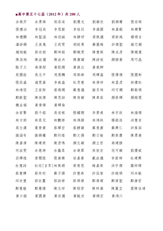 高中第57屆畢業生名錄