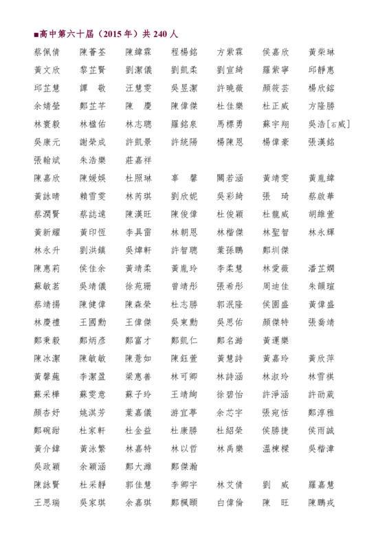 高中第60屆畢業生名錄