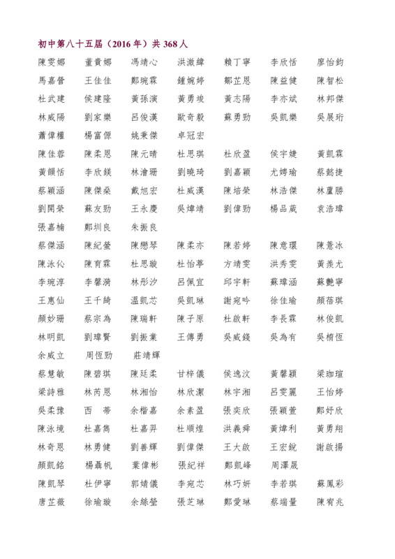 初中第85屆畢業生名錄