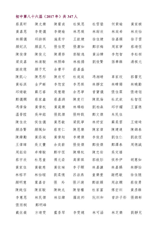 初中第86屆畢業生名錄