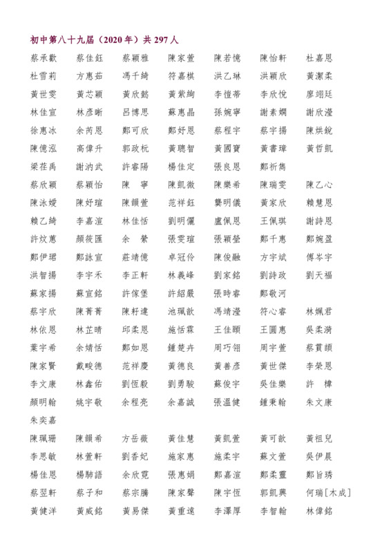 初中第89屆畢業生名錄