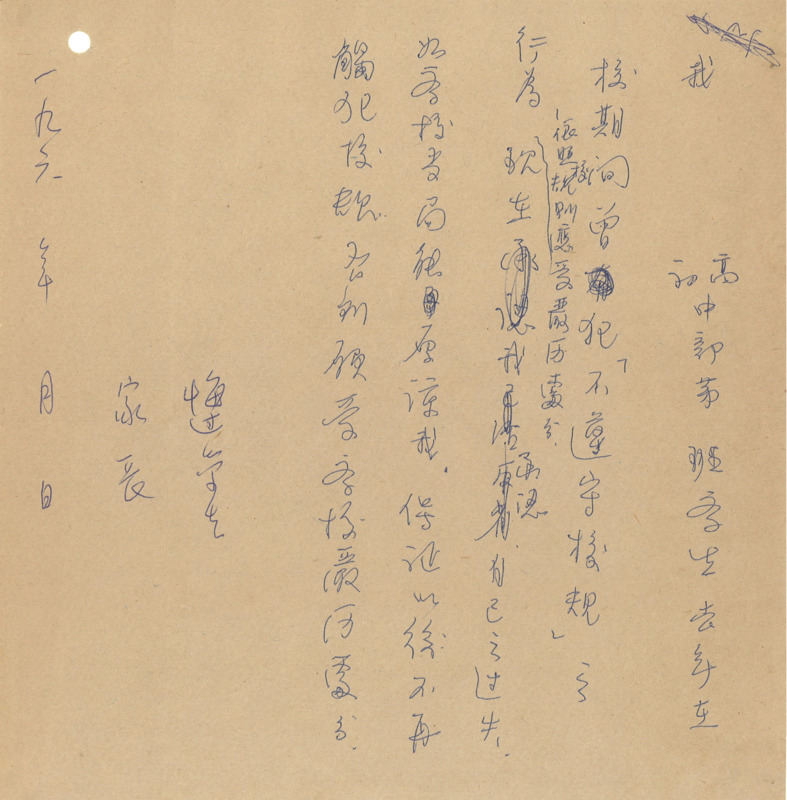 1969年,學校要求1968年犯過學生簽具悔過書,承認犯「不遵守校規」之行為,並保證不再觸犯。